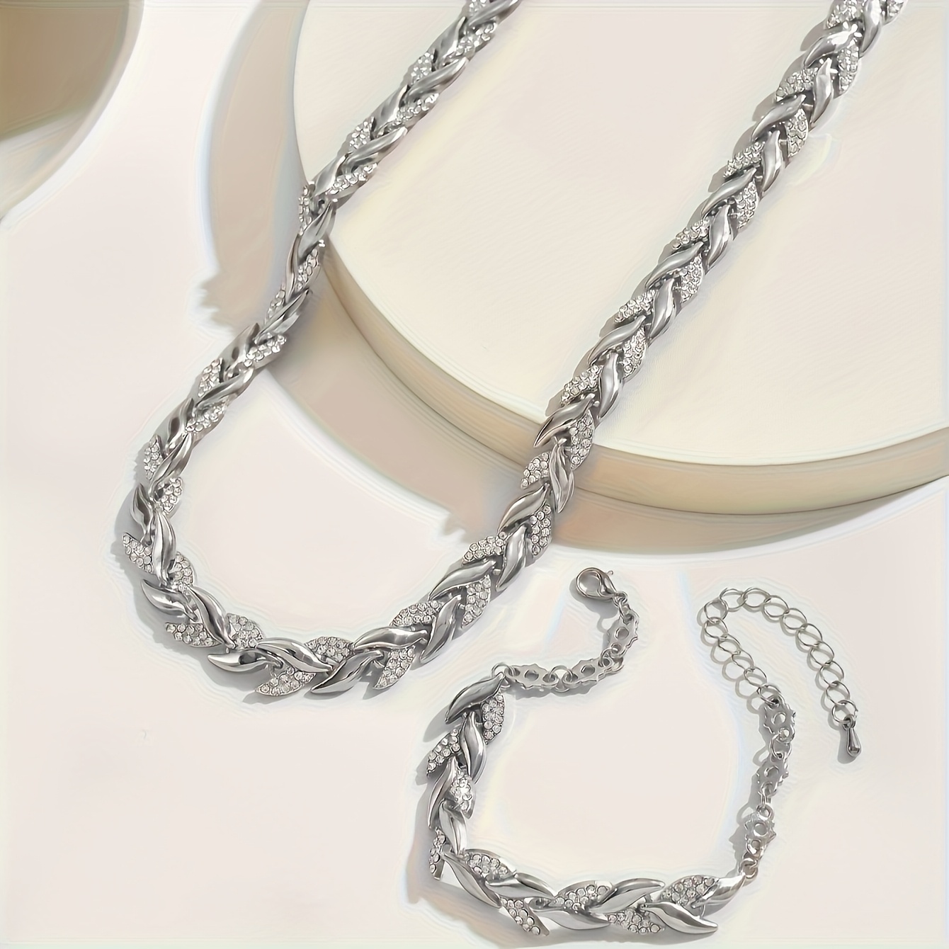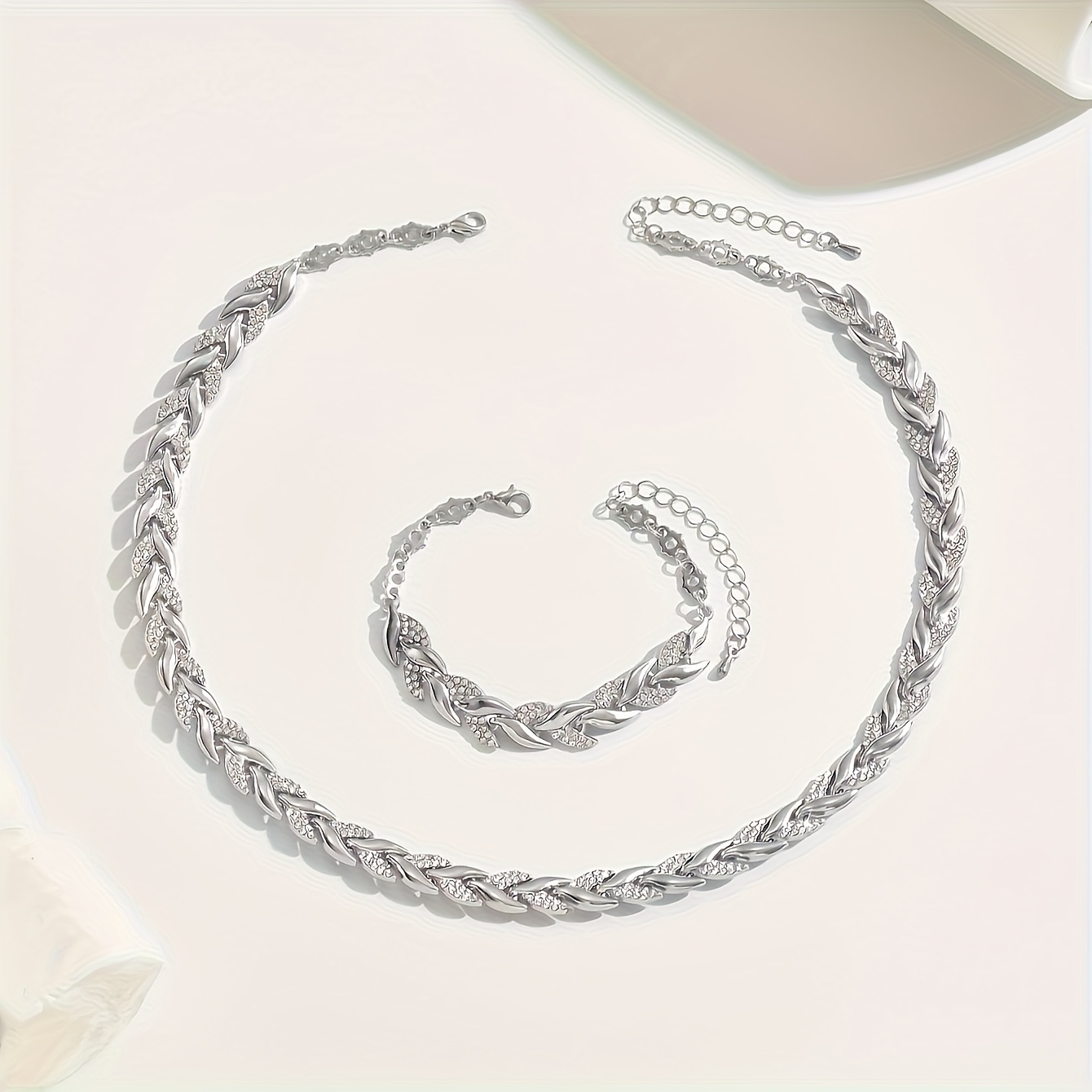 1 Bracelet 1 Necklace Light Luxury Elegant Design Inlaid Glass Rhinestone Fish Tail Jewelry Set Suitable For Women'S Autumn And Winter Banquet Daily Matching