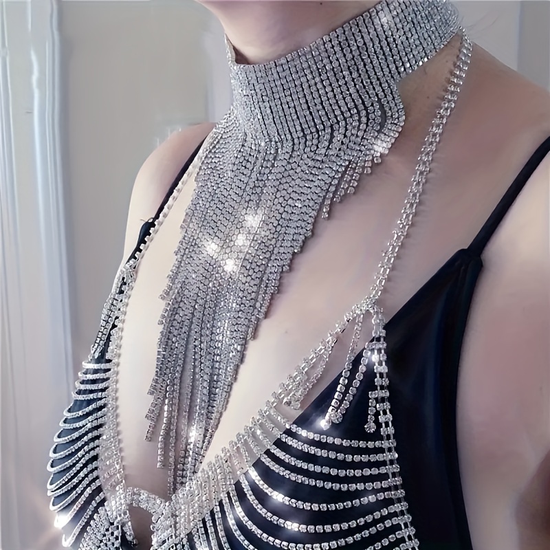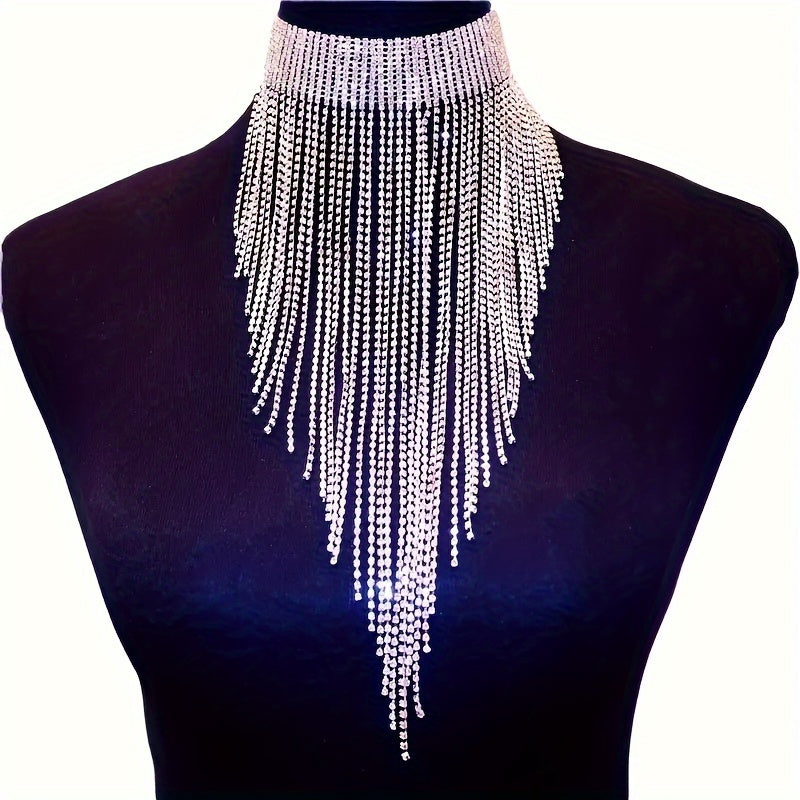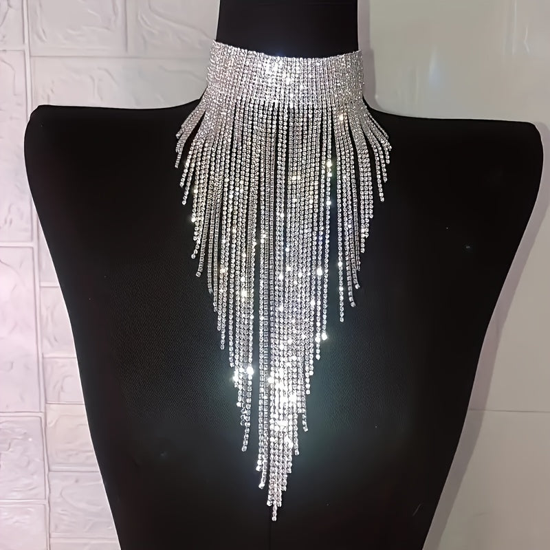 1 Piece Women's Luxury Rhinestone Tassel Necklace - 18K Gold Plated, Synthetic Cubic Zirconia Mosaic - All-Season Jewelry | Glamorous & Elegant Design | Perfect for Banquet Party Nightclub