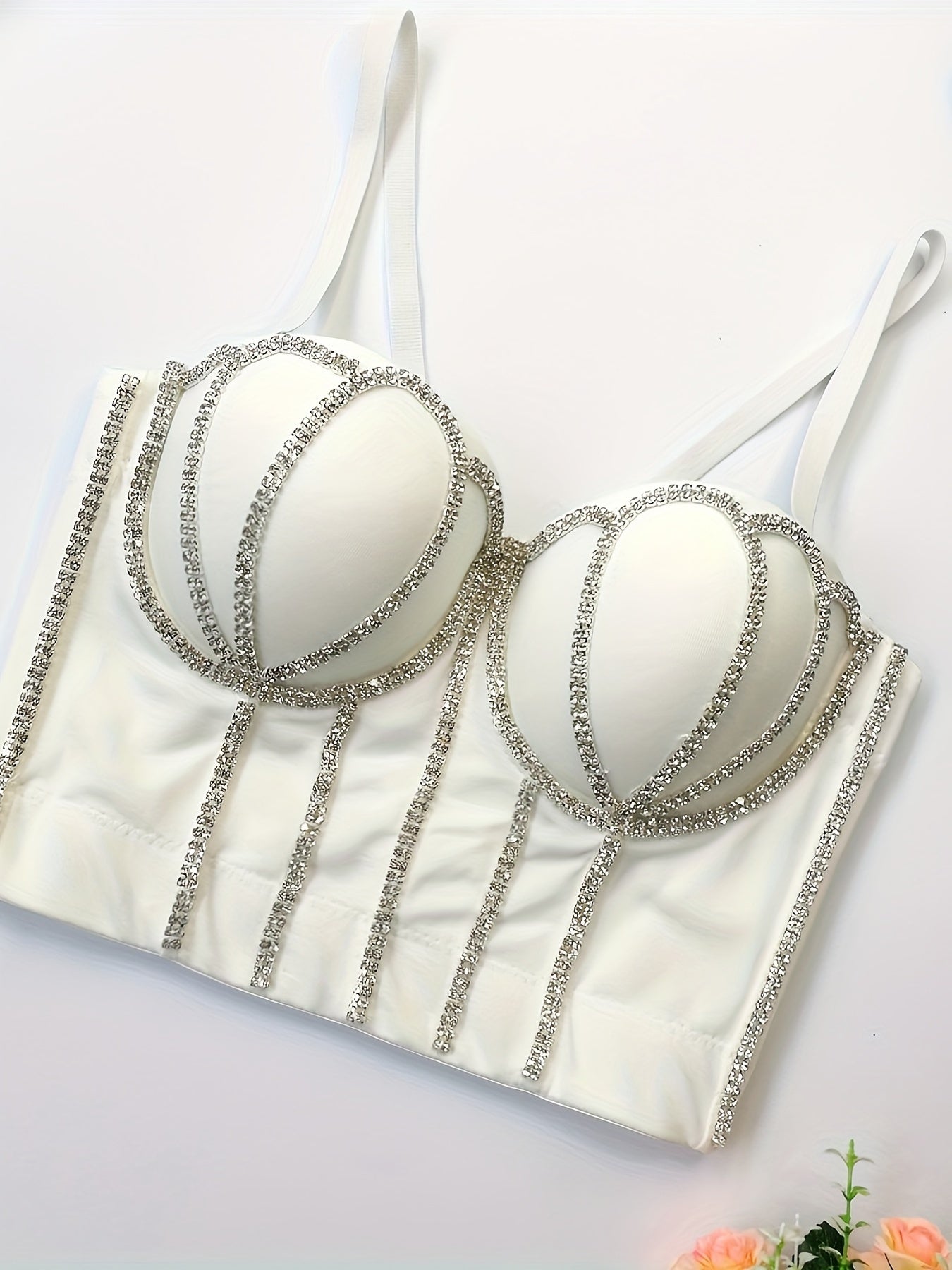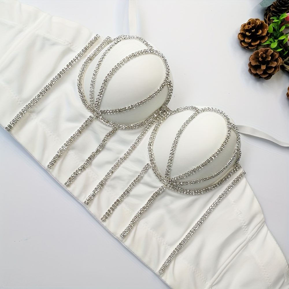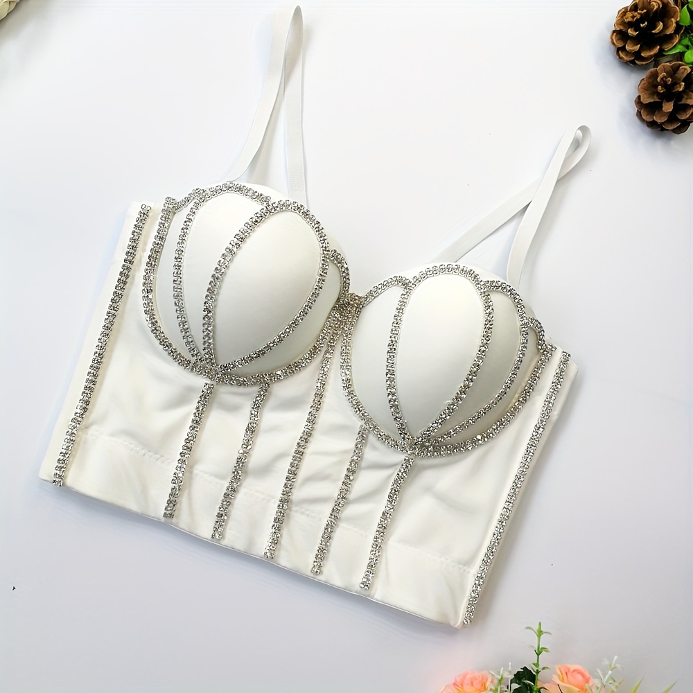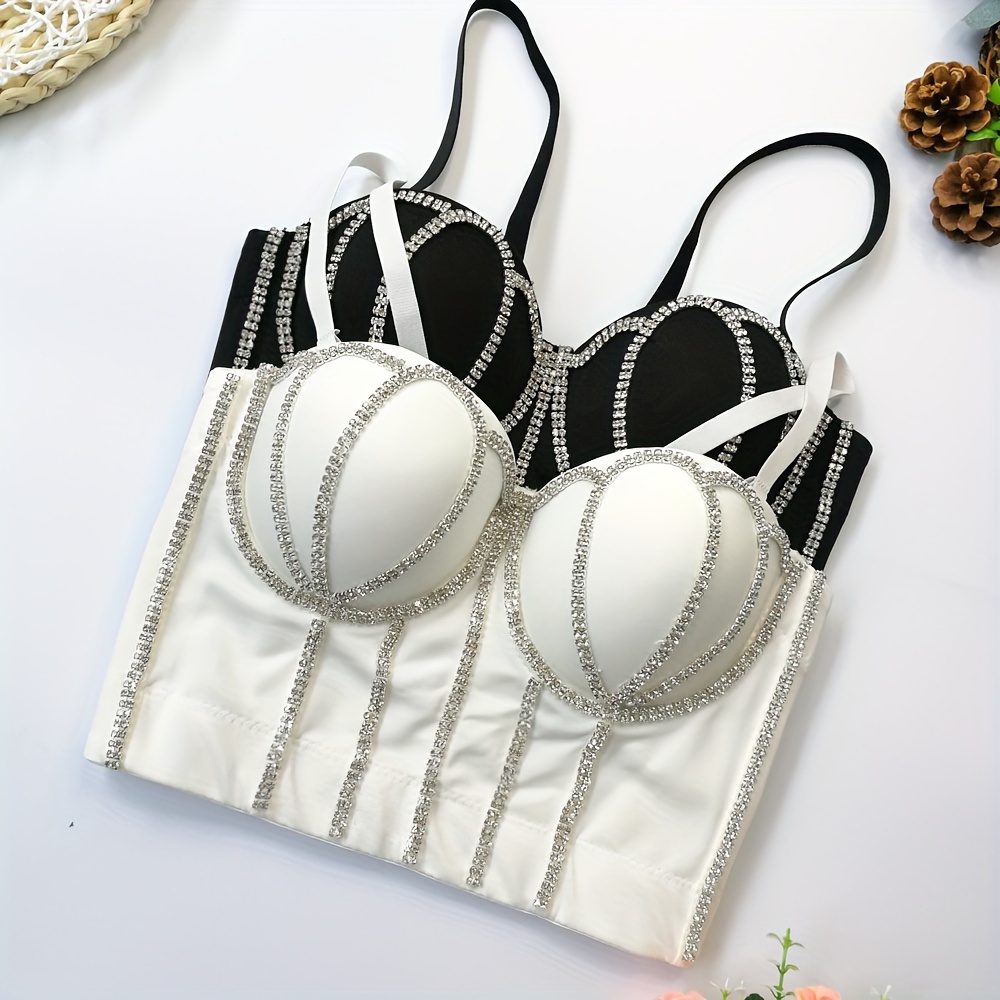 #8185 French Design Sleeveless Vest, Niche Shaping Underwear for Women, Fishbone Top with Studs and Shiny Rhinestones, Women'S Group Tightening Wrap Chest