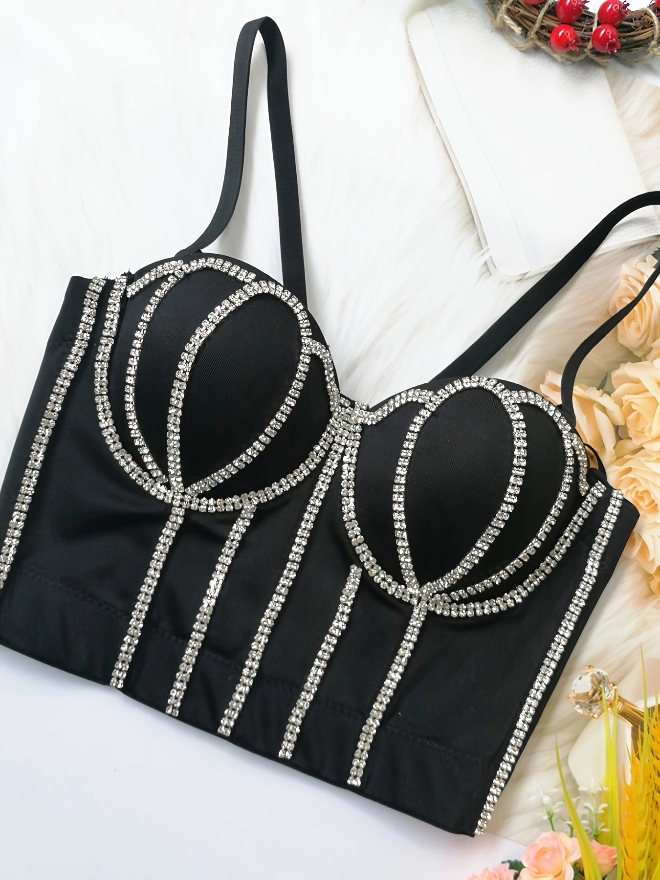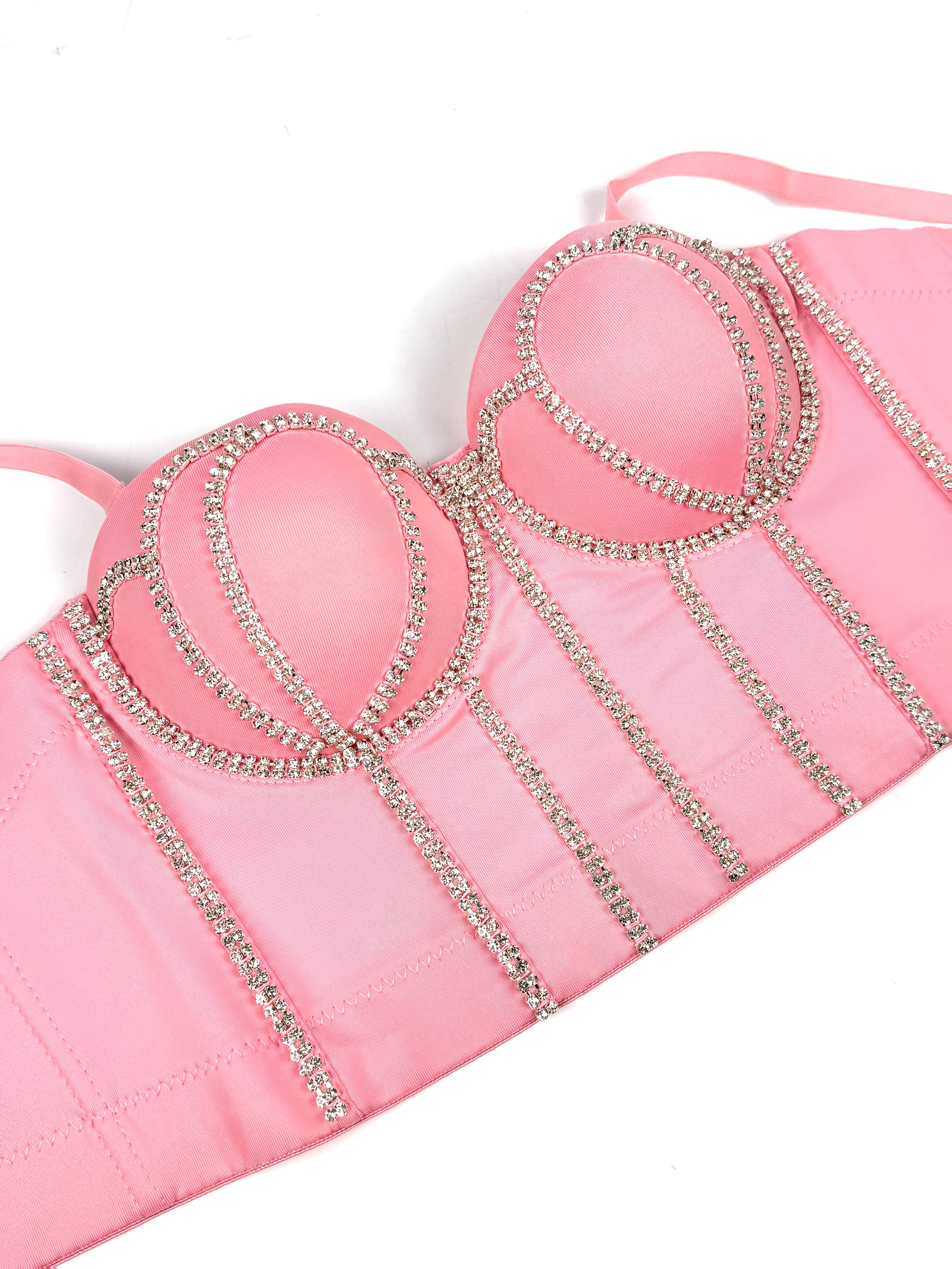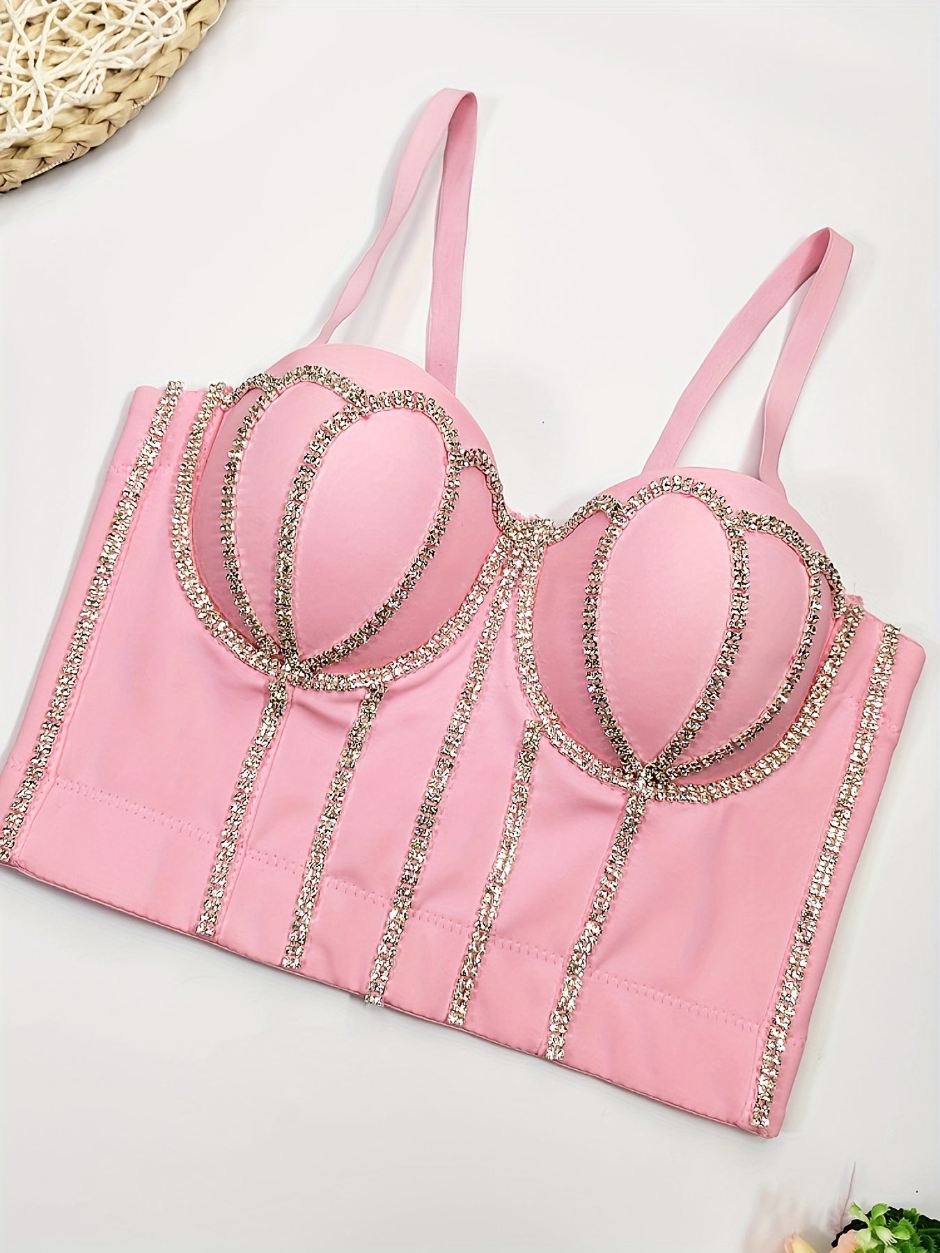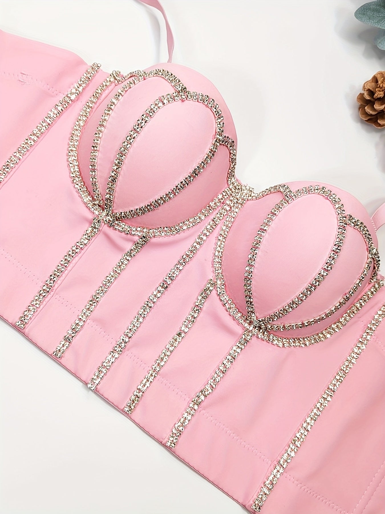 #8185 French Design Sleeveless Vest, Niche Shaping Underwear for Women, Fishbone Top with Studs and Shiny Rhinestones, Women'S Group Tightening Wrap Chest