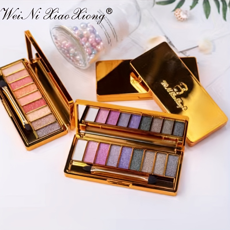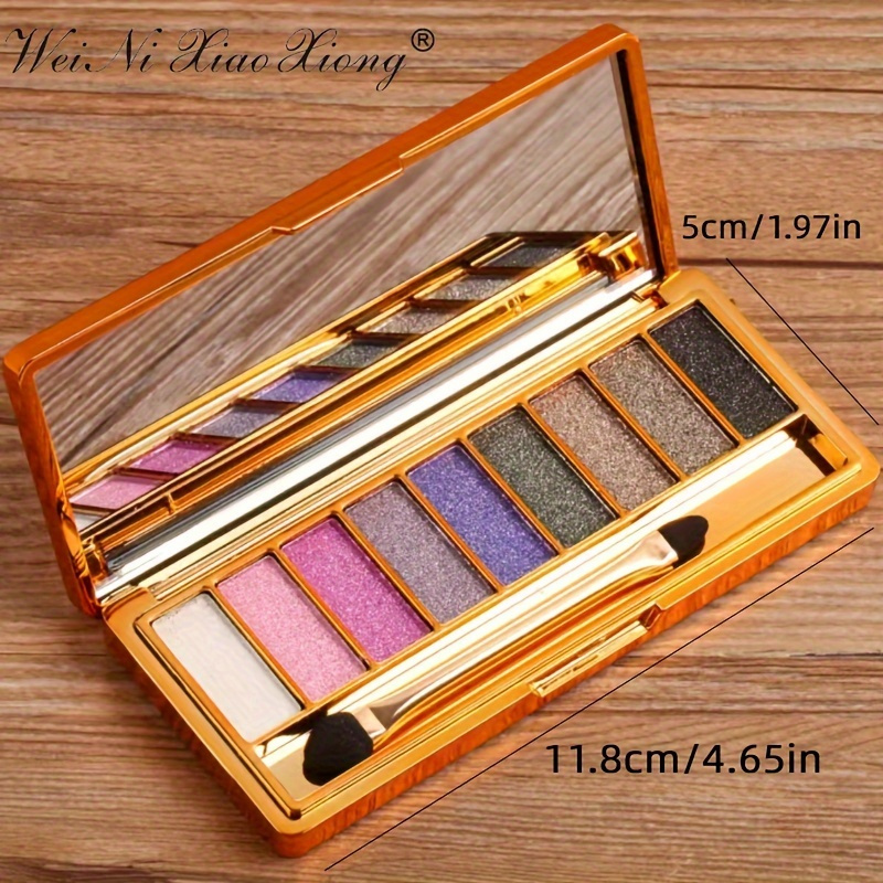 [9-color Golden Eye Shadow Palette] The 9-color golden eye shadow palette is shiny, shiny and shiny, with brush and mirror, high pigment, durable makeup, creating a gorgeous appearance for the music festival, an exclusive gif