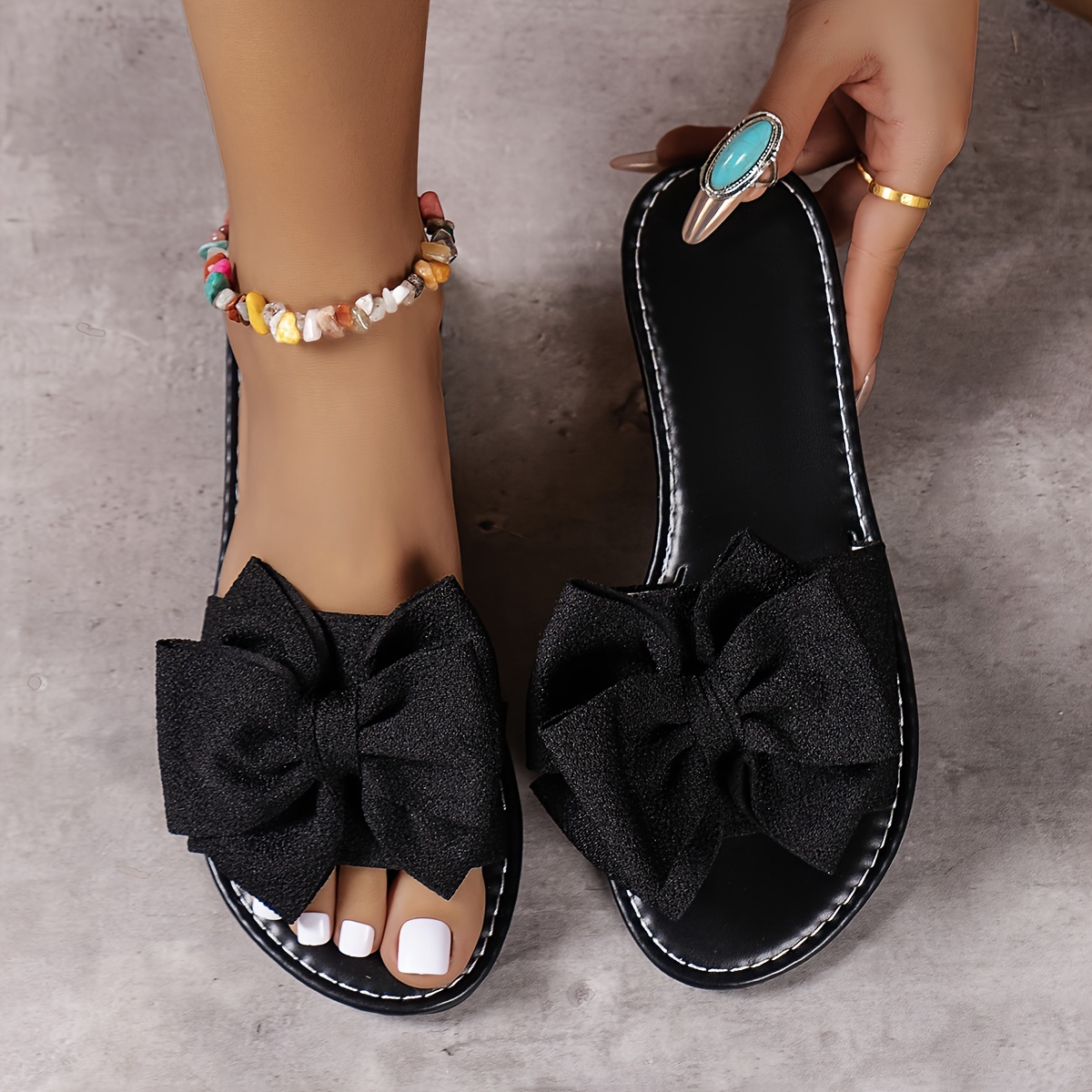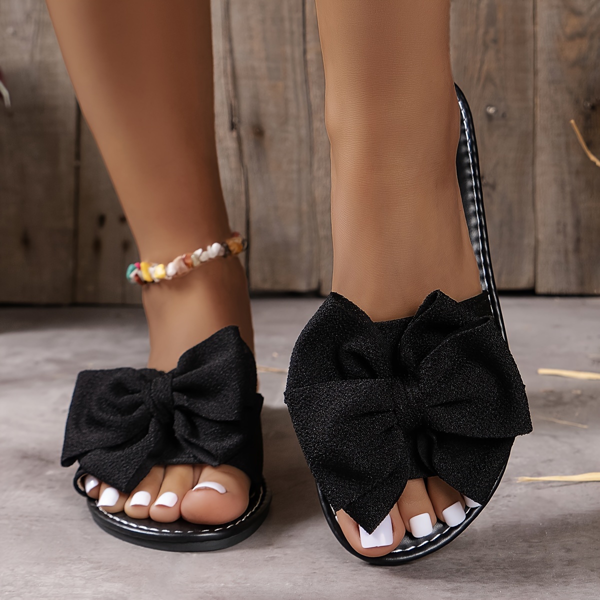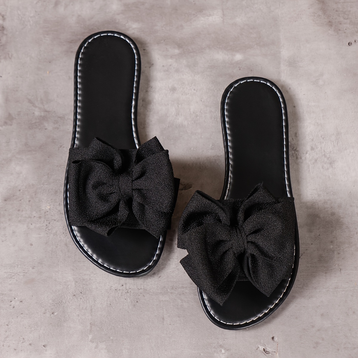 Chic Solid Color Bowknot Womens Flat Slides - Comfortable Slip-On, Ultra-Lightweight, Bowknot Accent - Perfect for Summer Beach Strolls and Vacations