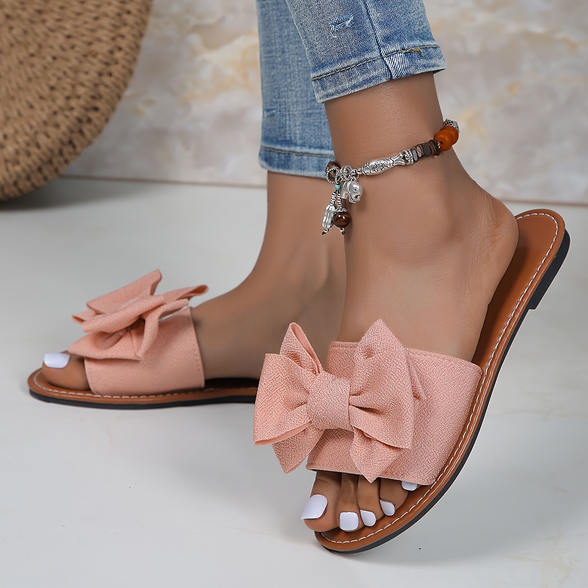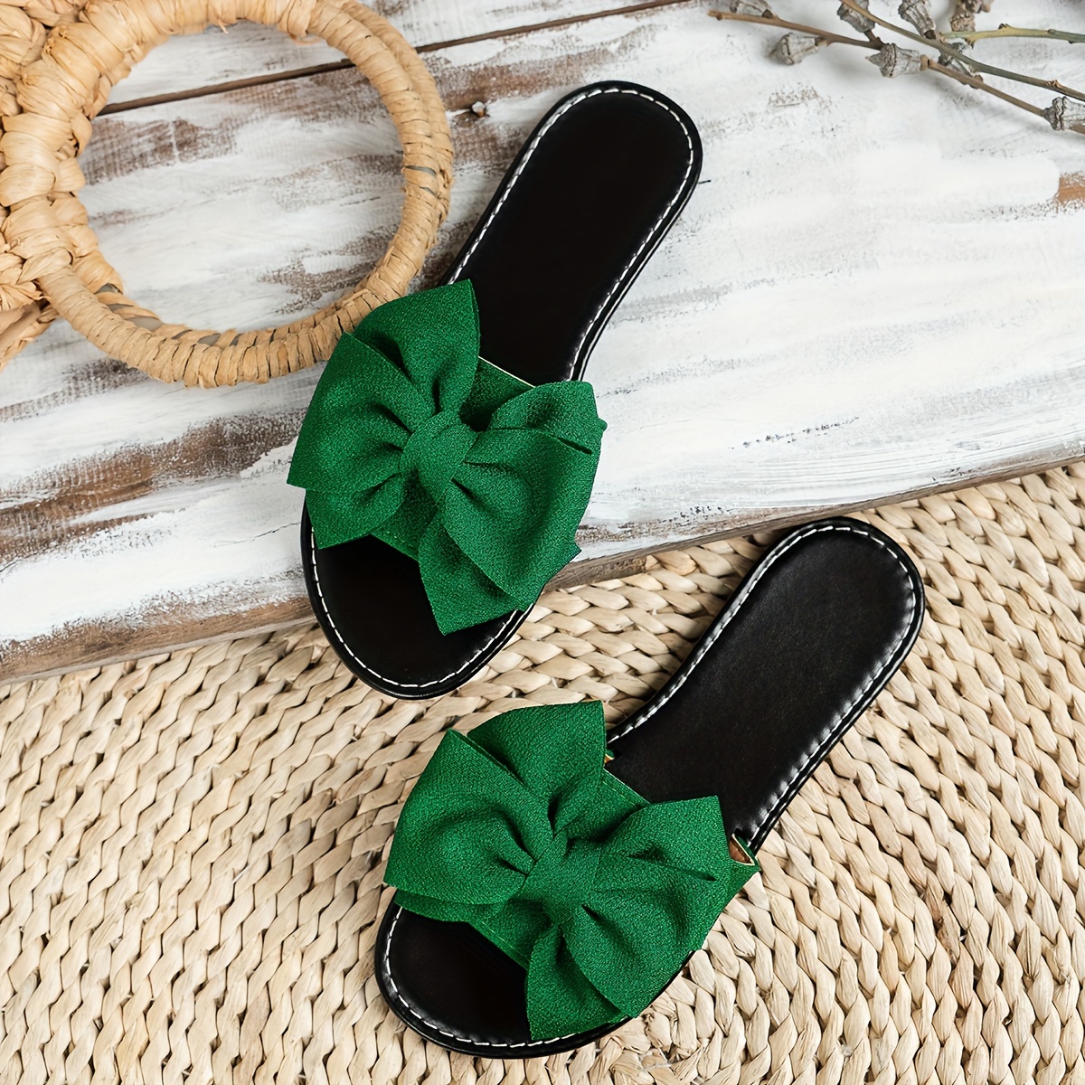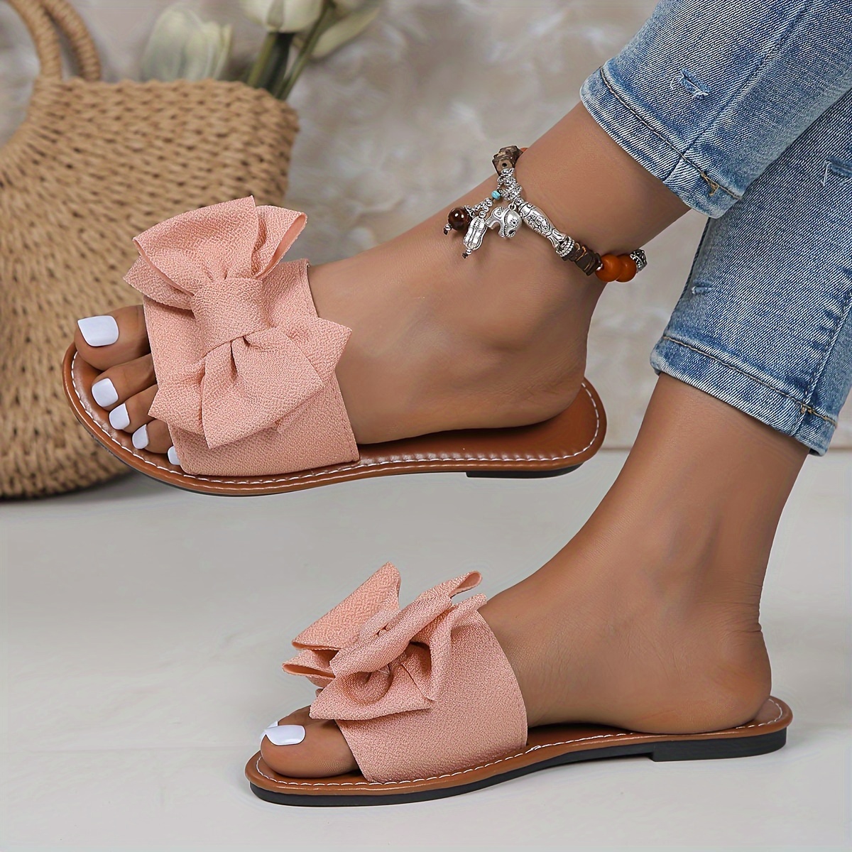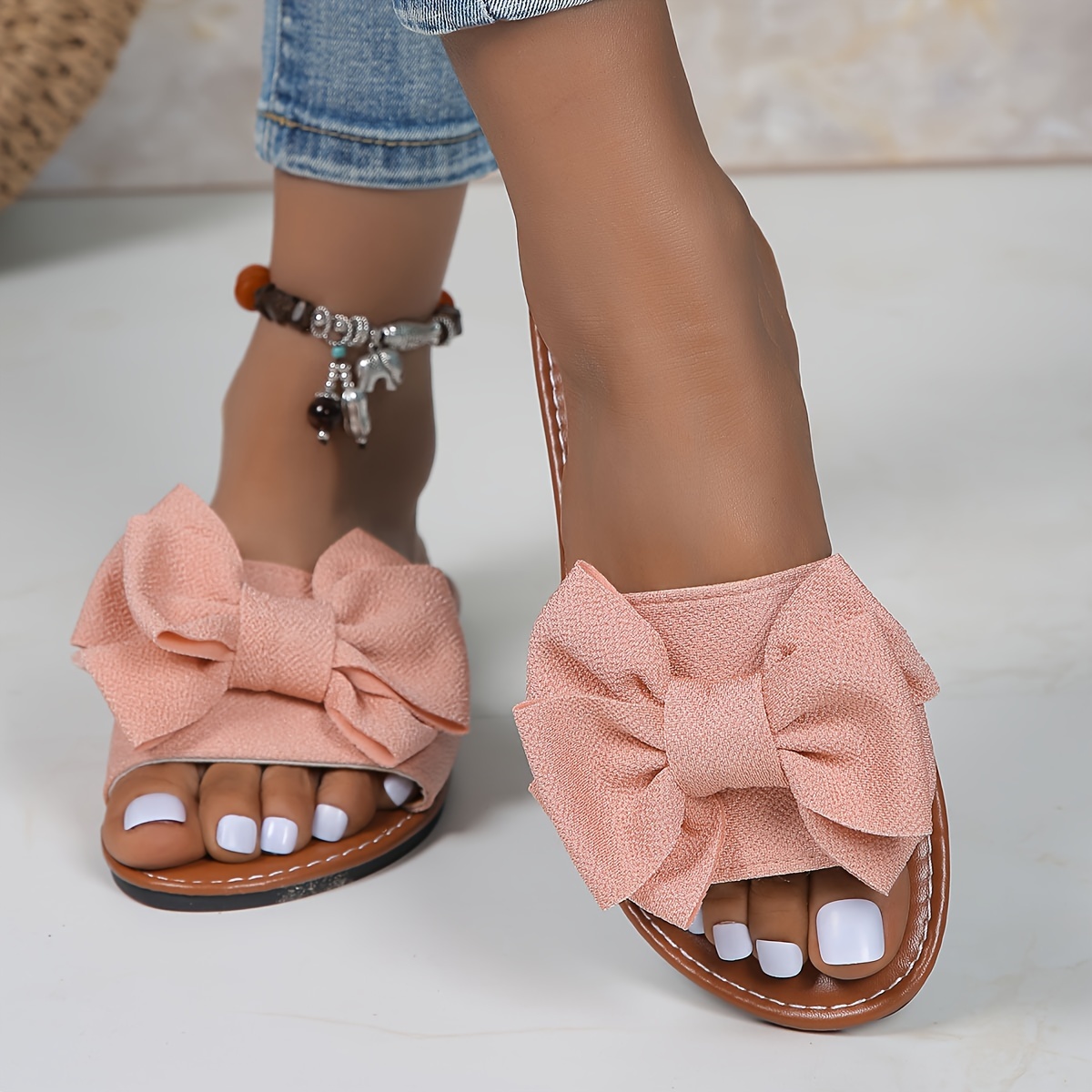Chic Solid Color Bowknot Womens Flat Slides - Comfortable Slip-On, Ultra-Lightweight, Bowknot Accent - Perfect for Summer Beach Strolls and Vacations