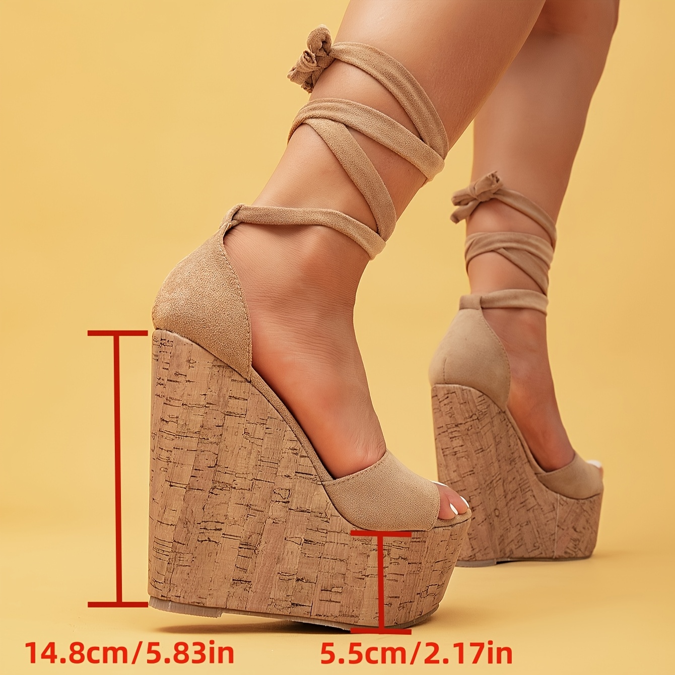 Elegant Beige Wedge Heeled Sandals for Women - Retro Boho Style with Crisscross Straps, Open Toe Platform Heels, Comfortable Cover Material, Ideal for Vacation & Fashion Outfits, High Heel Sandals