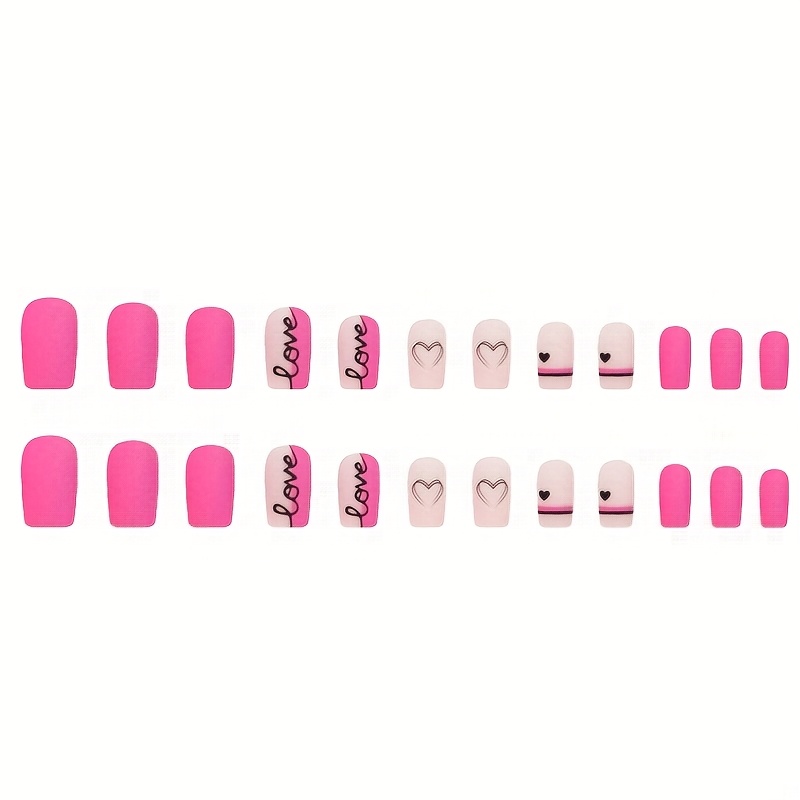 Glossy Pink Square Press-On Nails with Love Heart Design - Medium Length Valentine's Day False Nails for Women & Girls, Sweet & Stylish Nail Art, Fashion Accessories | Heart Nail Art | Vibrant Pink Nails, Cute Nails