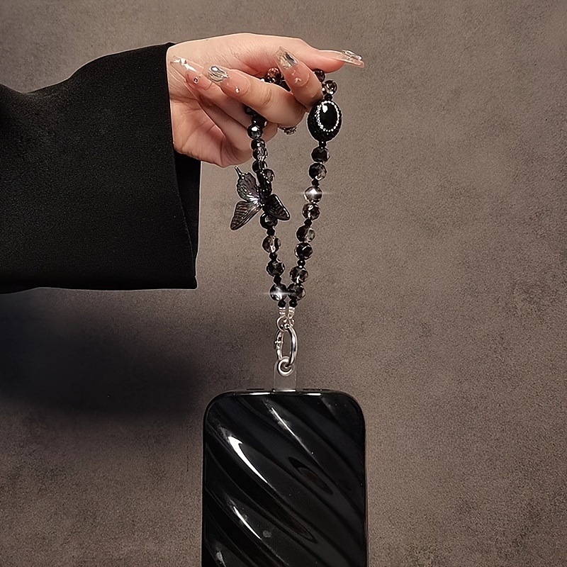 Luxury Crystal Butterfly Beaded Phone Lanyard Strap - Chic Handmade Wristlet Keychain Accessory with Gemstone Accents and Transparent Clip