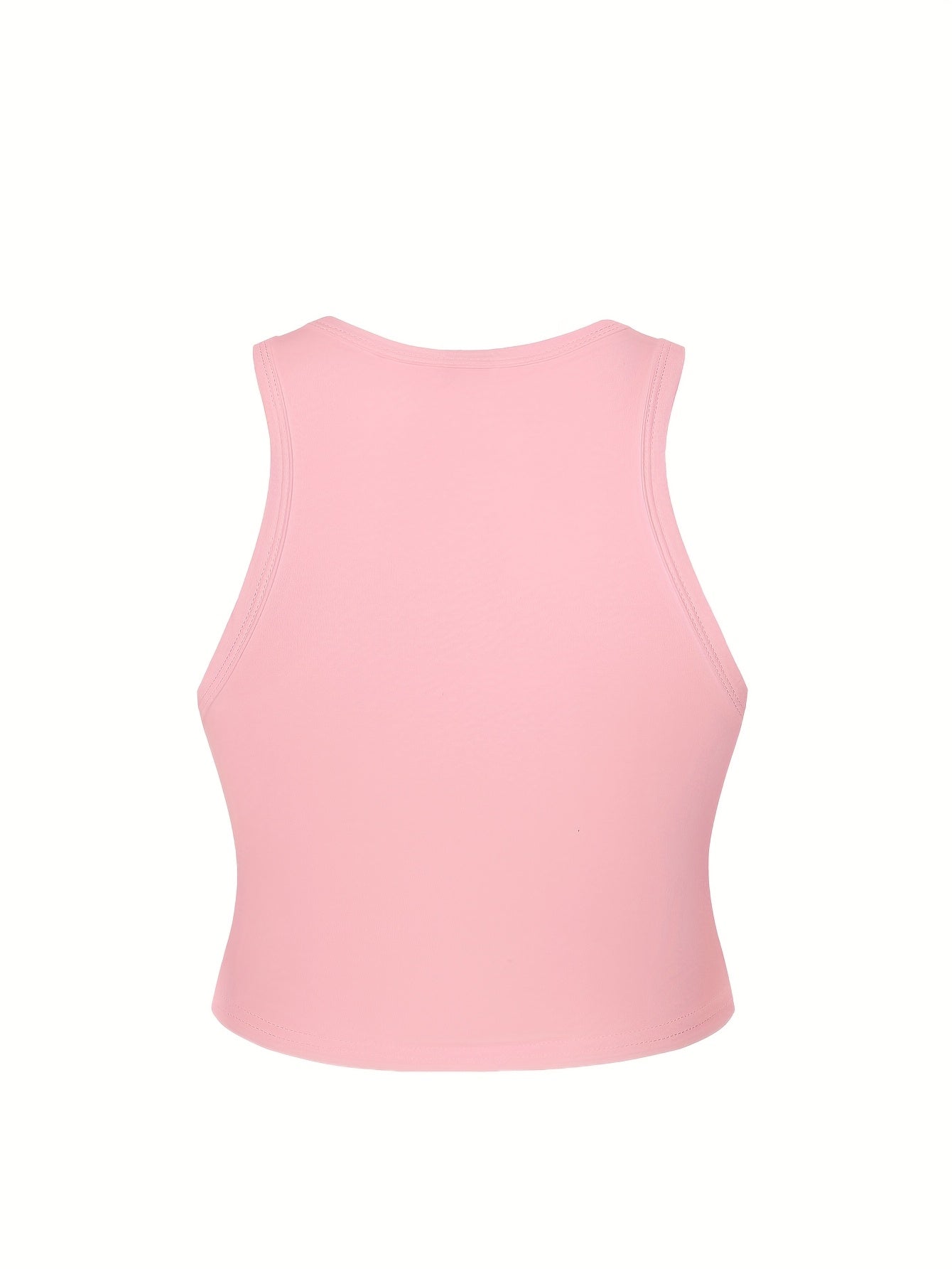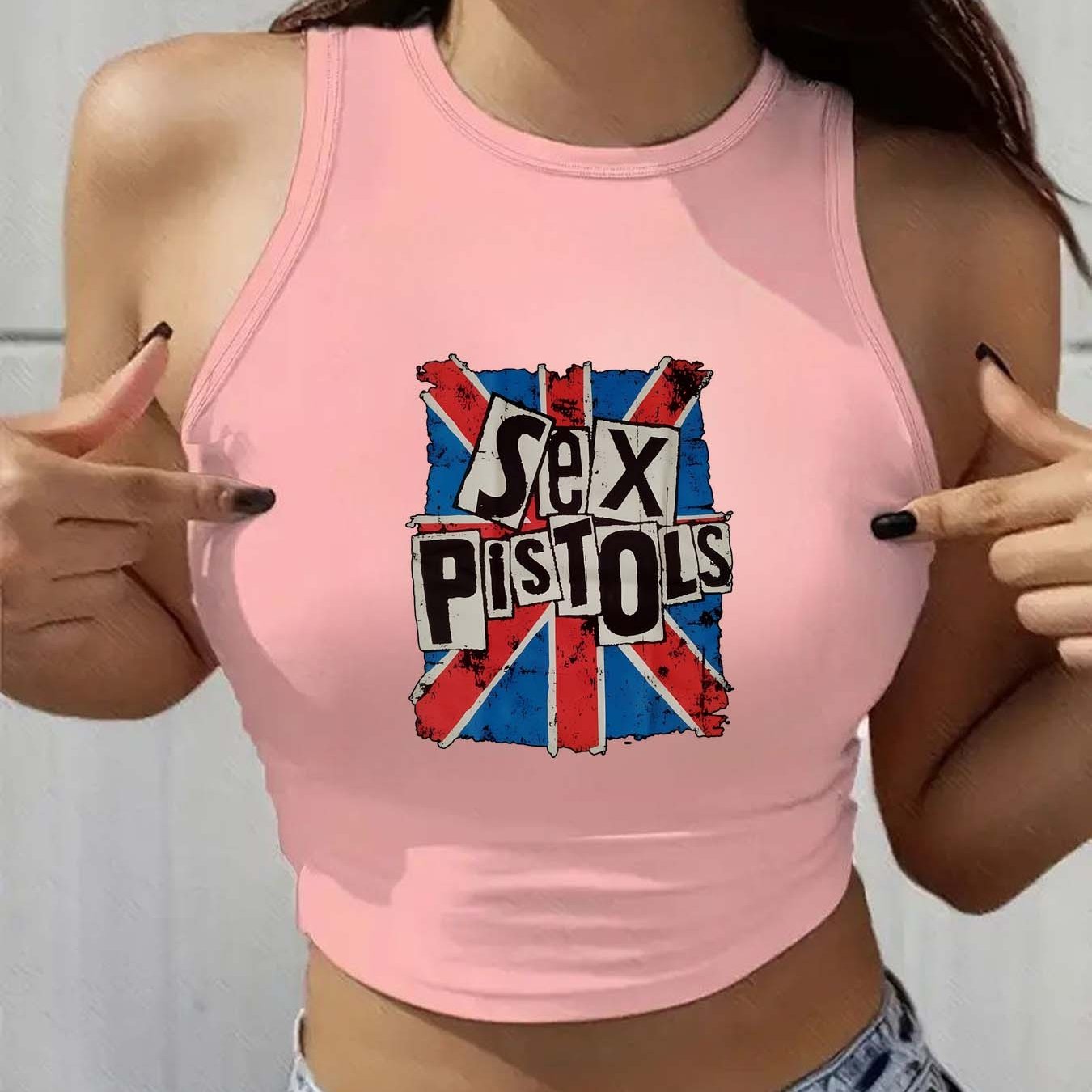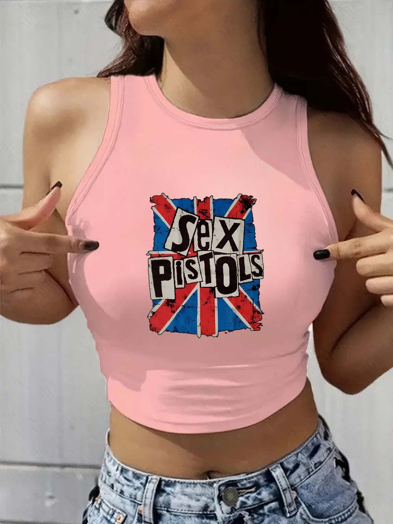 Women's Y2K fashion letter print, round neck short sleeved tank top with camisole, trendy spring and summer seasonal artistic Women's holiday party clothes, popular cute loose dopamine 's youthful style